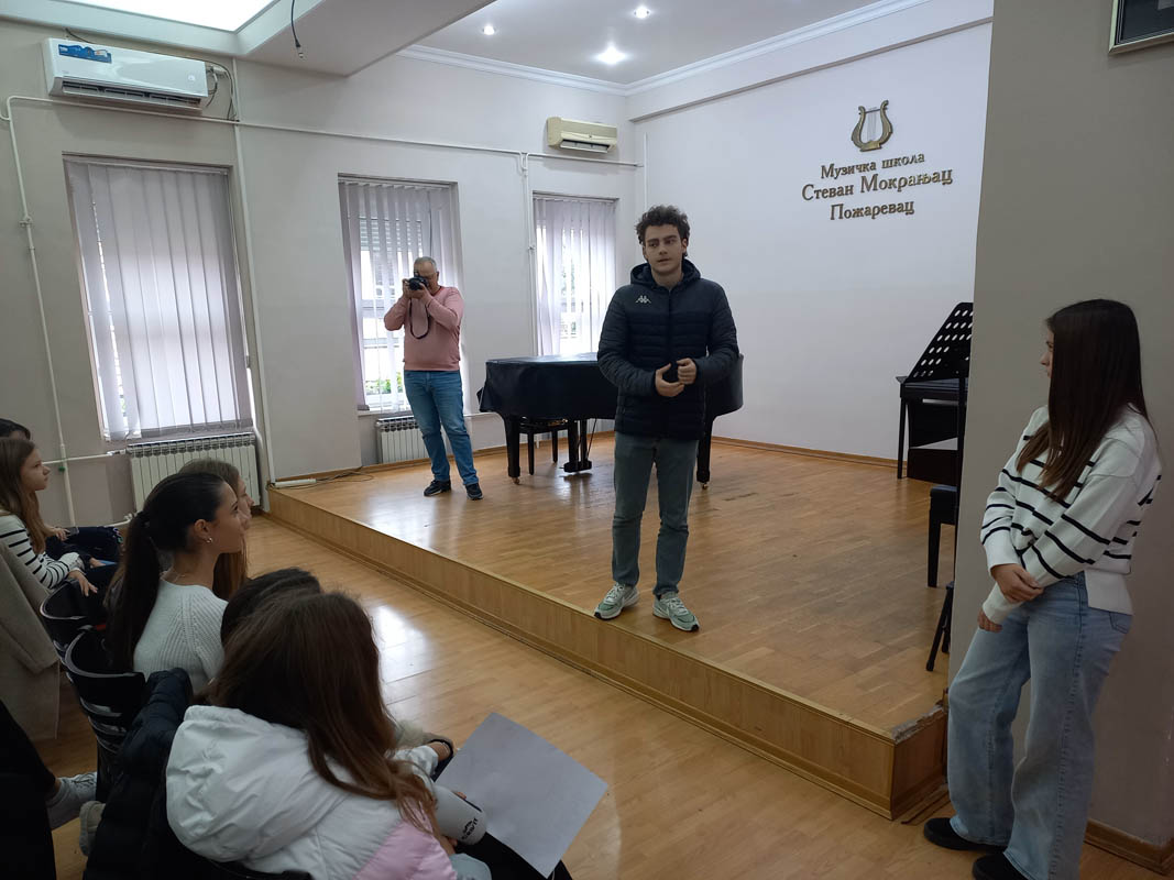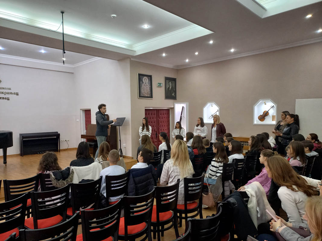 У Музичкој школи „Стеван Мокрањац“, директорка Данијела Пауновић срдачно је дочекала децу, мађионичара Радета Пилиповића, редитеља Лазара Јовановића и водитељку Александру Младеновић. Млади редитељ је овога пута био у средишту пажње. Обећао је деци да ће им помоћи око снимања било ког филма. Размењени су контакти, а на нама је да пратимо реализацију договореног.