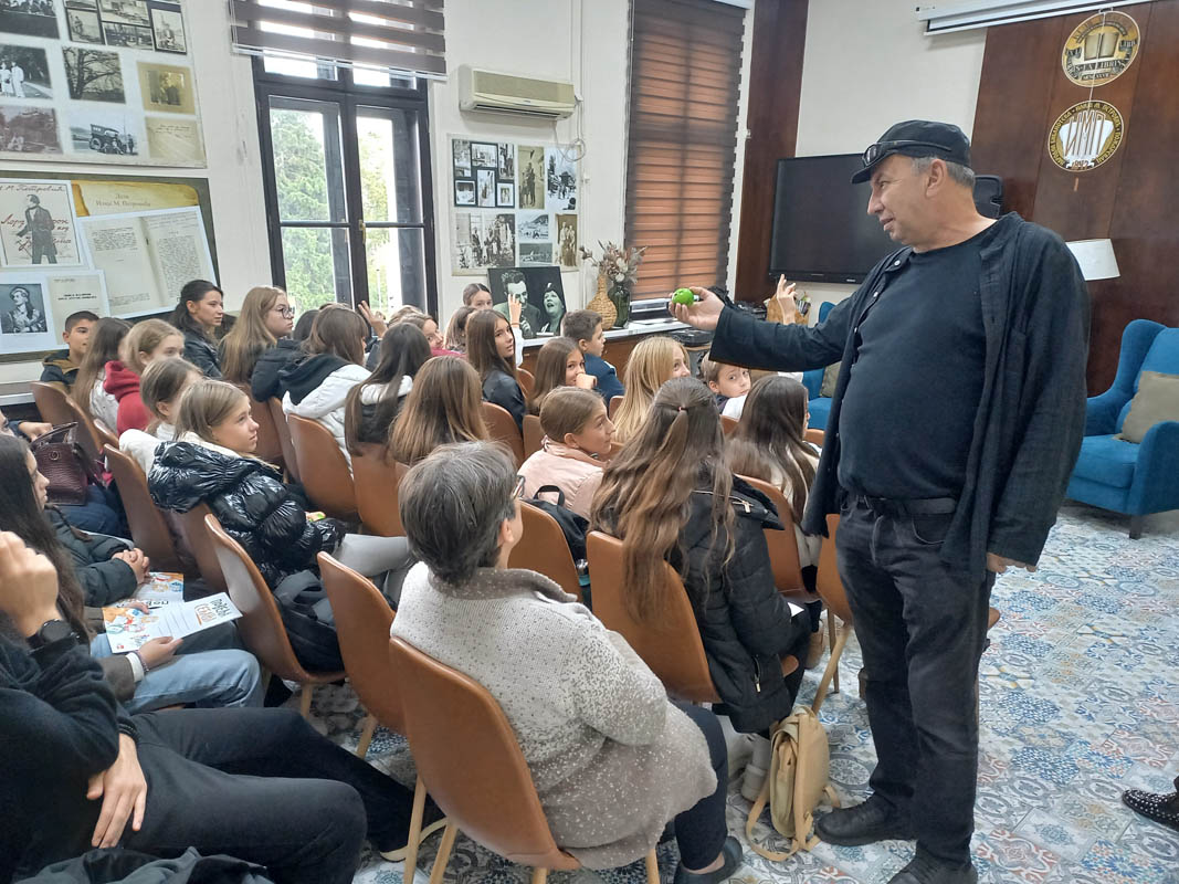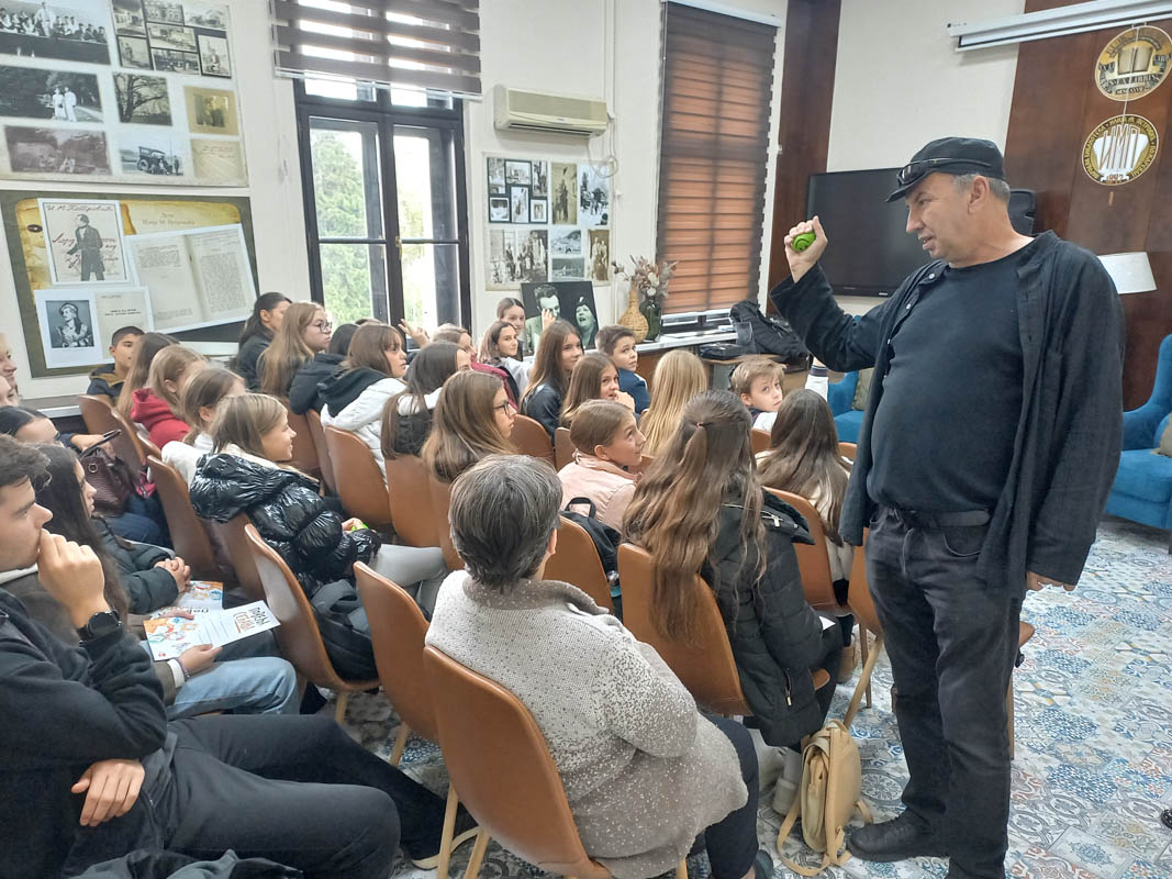 Урош Петровић и стотинак малишана нашли су уточиште у Народној библиотеци „Илија М. Петровић“, где је сјајни писац одржао још једну незаборавну радионицу „разгибавање можданих вијуга“.