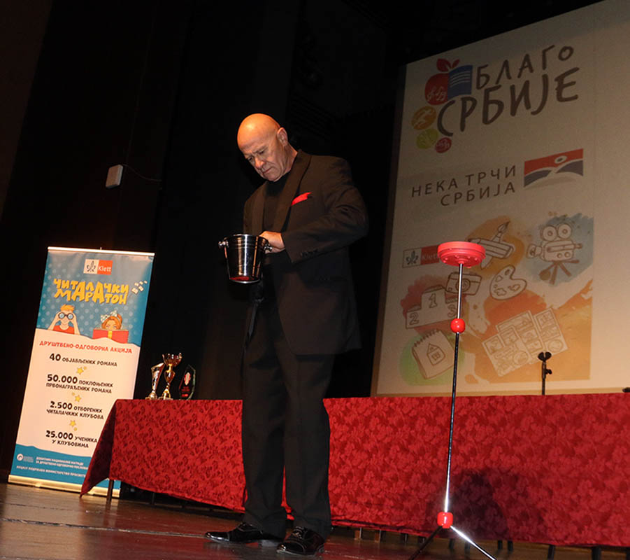 Такав величанствен успех нису очекивали ни највећи оптимисти. Дупке пун Дом културе, 530 ђака уживало је у интерактивном програму „Благо Србије“. Непосредни извођачи били су људи којима се Србија поноси: најтиражнији дечји писац у 21. веку Урош Петровић, његова колегиница Санела Благојевић, актуелни освајач „Доситејевог пера“ за роман „Дечак из последњег клупа“ ИК КЛЕТ,