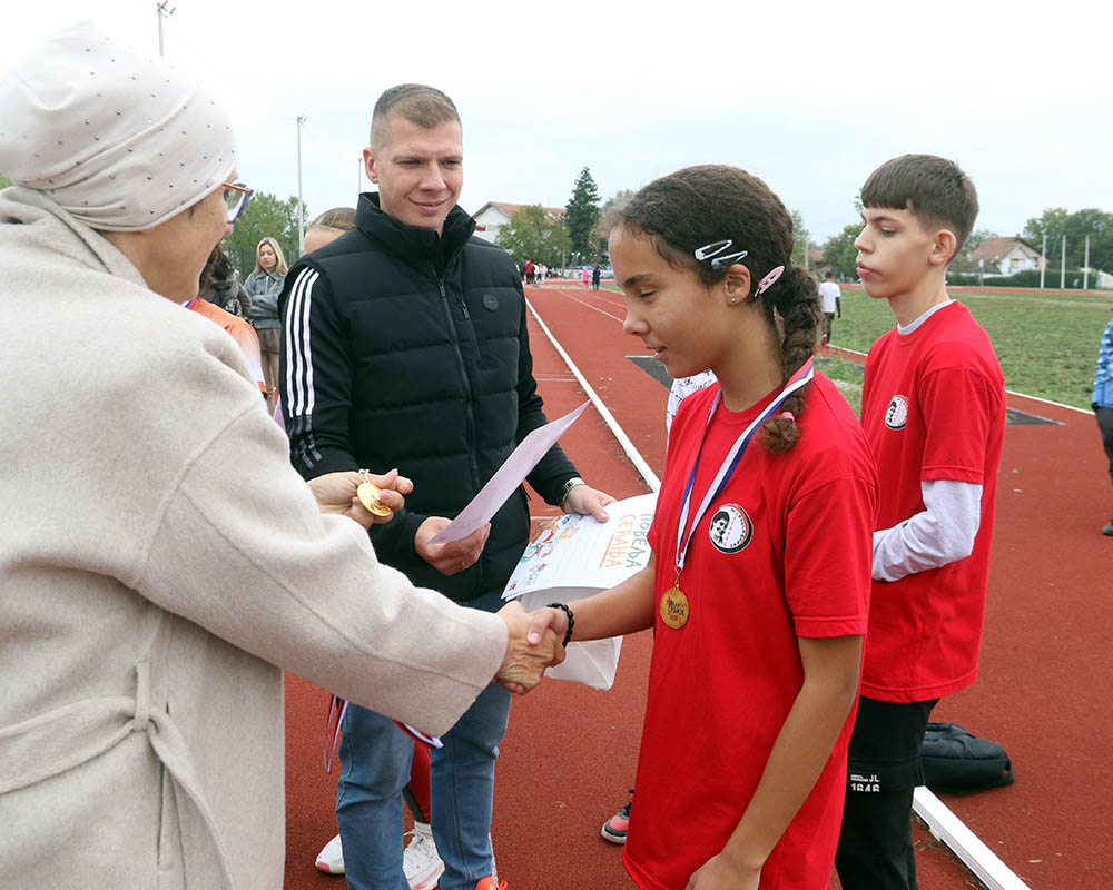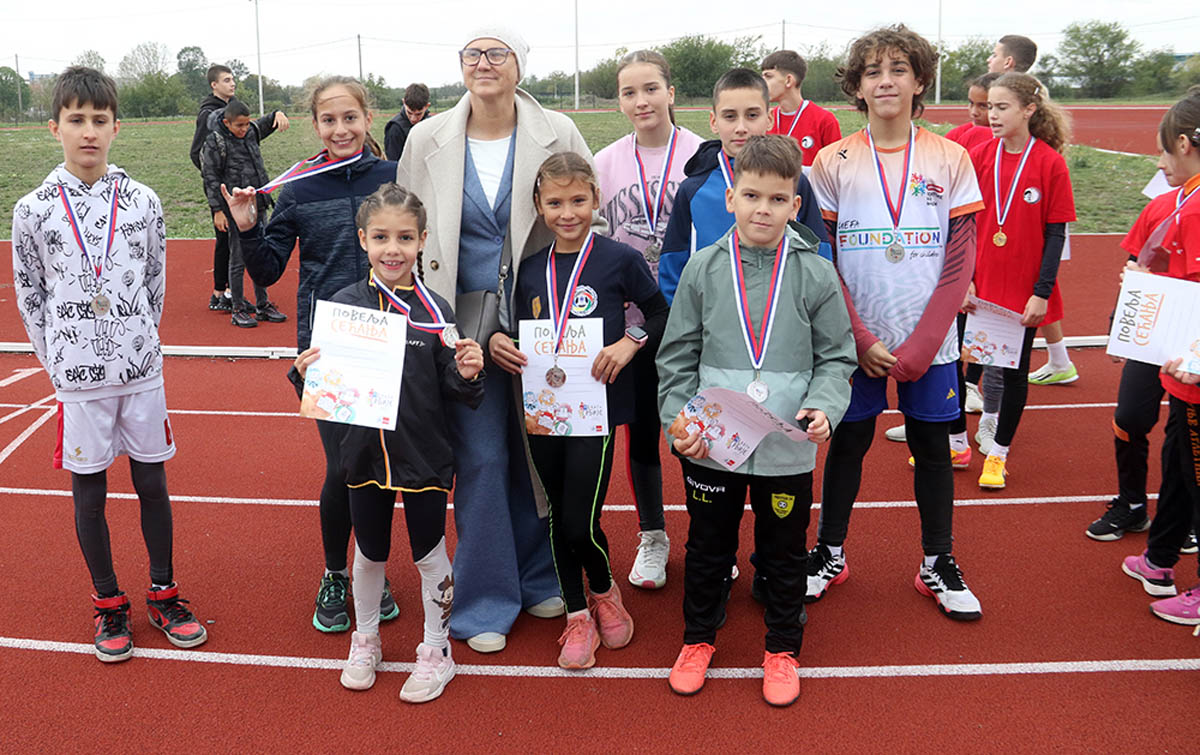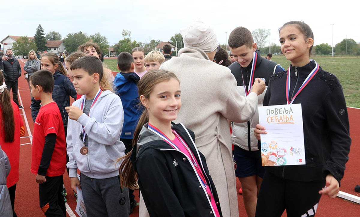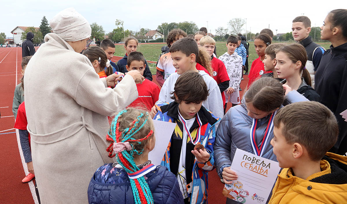 Да не може ништа без спорта, потврдила је и премијера „Блага Србије“. Такмичење основношколских мешовитих штафета одржана је на Стадиону „Јово Будимир“. У финалу се надметало осам штафета, а победу је извојевала осморка из ОШ „Десанка Максимовић“, која се окитила златном медаљом. Сребро је припало штафети ОШ „Краљ Александар I“, а бронза ОШ „Свети Сава“. И они, као и сви други актери данашњег незаборавног догађаја у Пожаревцу, понели су кућама и Повељу сећања.