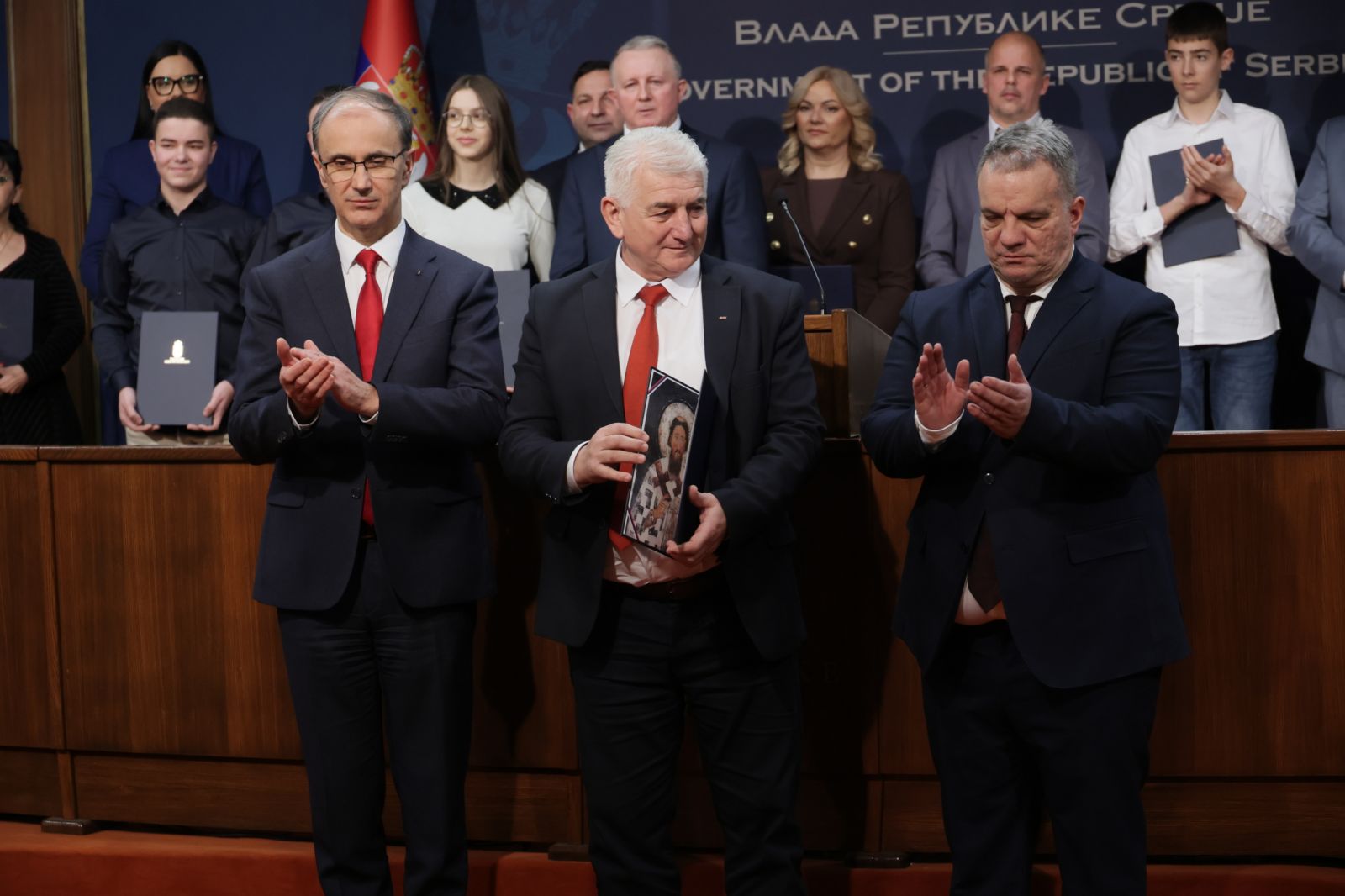 Премијер Ђуро Мацут и министар просвете Вук Дејан Станковић уручили су, на церемонији у Влади Србије, 31 Светосавску награду појединцима и институцијама за постигнуте изузетне резултате у области образовања и васпитања за 2025. годину. Мацут је рекао да је данашњи дан „празник свих празника“ за све који раде у образовном систему.